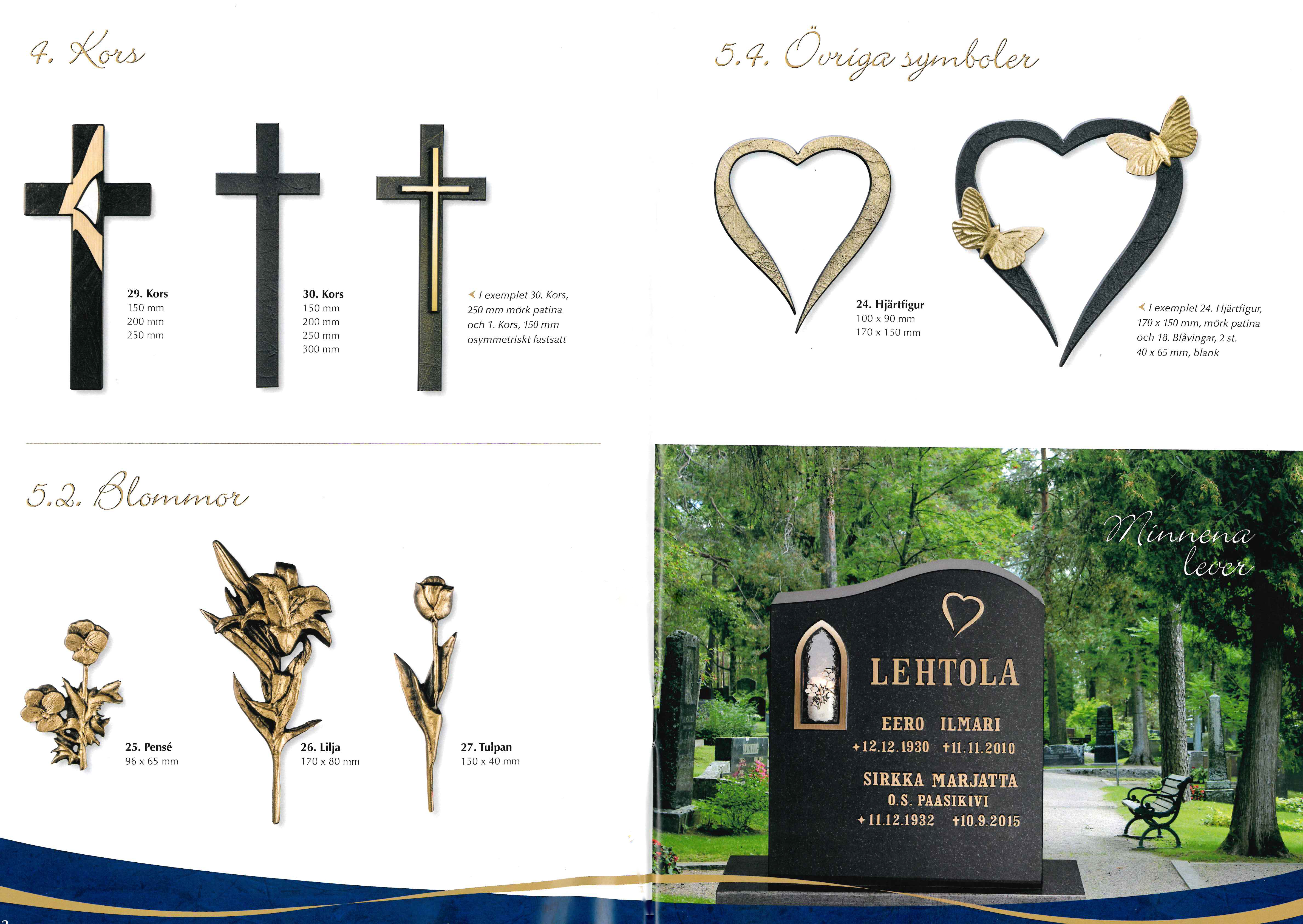 Dekorer att fästa på lyktglas, ramen eller direkt på stenen. Finns i samma ytbehandlingar som lyktvalven.